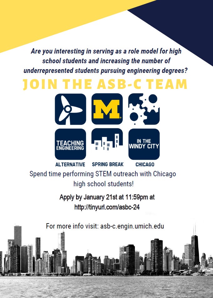 Want to visit Chicago and inspire the next generation of Engineers? Join - Alternative Spring Break Chicago!